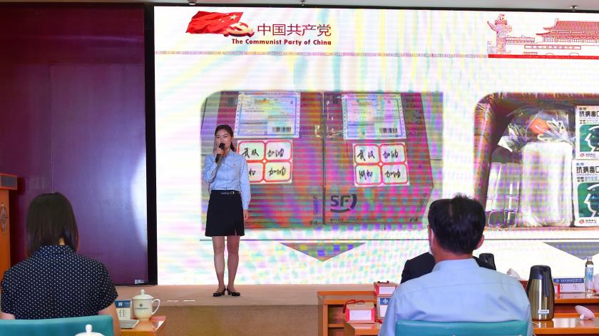 而后公司总部党委杨艳琴同志讲述了公司各级党组织和广大党员干部积极发挥战斗堡垒作用和模范带头作用,不忘初心、勇担使命,坚决打赢疫情防控阻击战的故事——《把爱送到千里之外》。